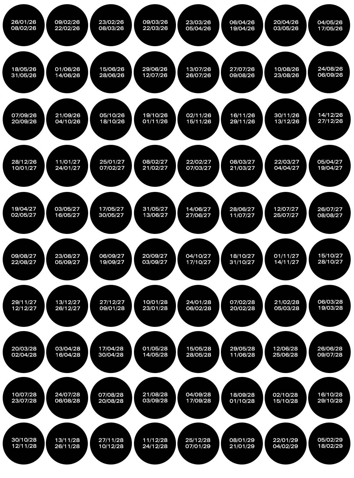 Calendario affissioni 2026-2027-2028-2029